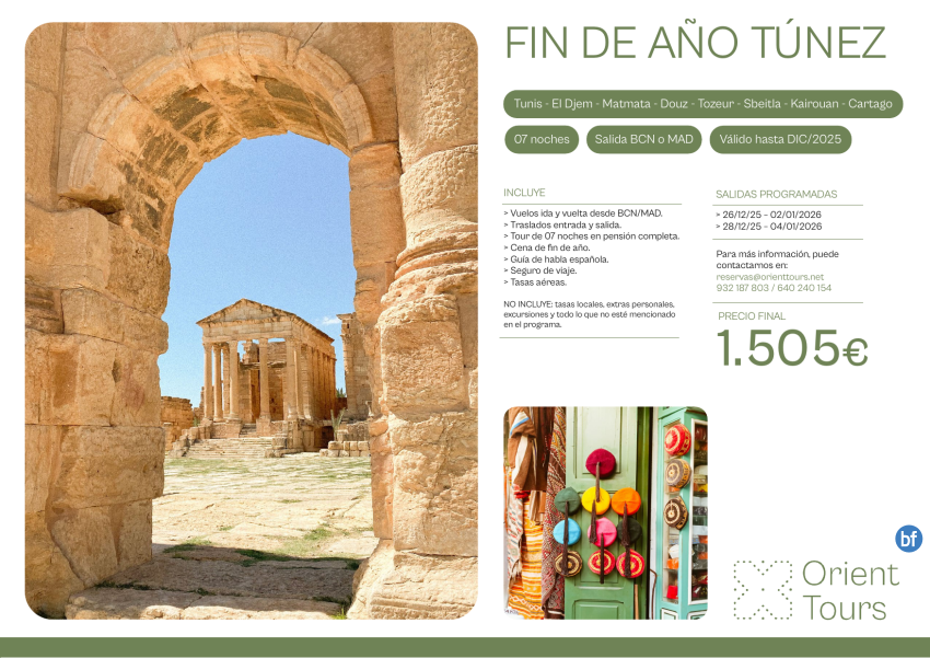 Túnez Fin de Año tour cultural 07 noches salida 28/12 con vuelos desde Bcn y Mad